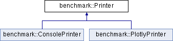 Implemented in benchmark::PlotlyPrinter, and benchmark::ConsolePrinter.